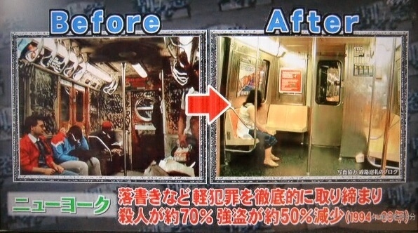 少しだけ秩序を乱すような行為でも、ほうっておくと地域の秩序が崩れ、どんどん犯罪が増えてい くというような理論です。